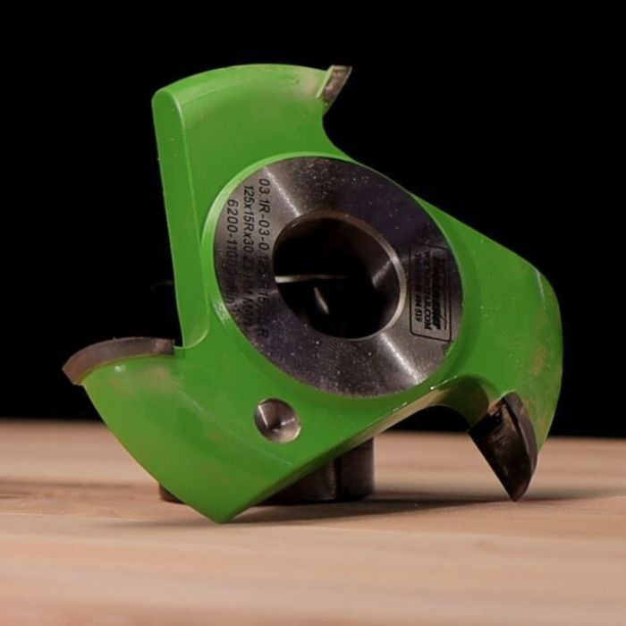 30 mm rádiusz profilú, 140 mm átmérőjű, 33 mm vastag, 3 késes, L balos, HM, forrasztott lapkás konvex negyedkörmaró, Woodmaster ipari minőségű, faipari asztali marófej Tigra Germany vídia késekkel.